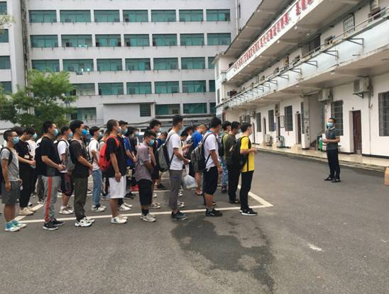 图为出发前学校武装部工作人员向参检学生交待体检注意事项
