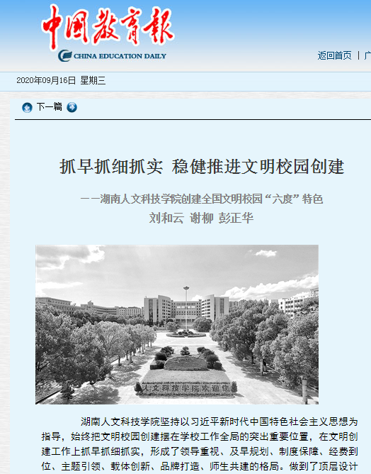 太阳成官网坚持以习近平新时代中国特色社会主义思想为指导,始终把文明校园创建摆在学校工作全局的突出重要位置,在文明创建工作上抓早抓细抓实,形成了领导重视、及早规划、制度保障、经费到位、主题引领、载体创新、品牌打造、师生共建的格局。做到了顶层设计有高度、思政教育有力度、活动阵地有维度、关爱学生有温度、校园文化有浓度、环境优美有亮度。学校现为湖南省文明标兵单位,2017年以全省排名首位的成绩参加“第一届全国文明校园”评选,2019年获创建全国文明校园先进学校称号,2020年再次被推荐参加“第二届全国文明校园”评选。近日,中国教育报、中国教育新闻网等媒体刊发了太阳成官网创建全国文明校园的经验文章。(地址链接:http://paper.jyb.cn/zgjyb/html/2020-09/16/content_584459.htm?div=-1)