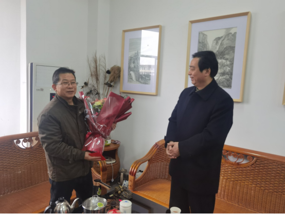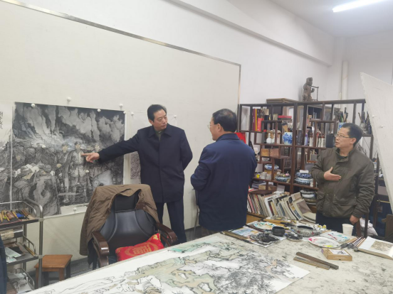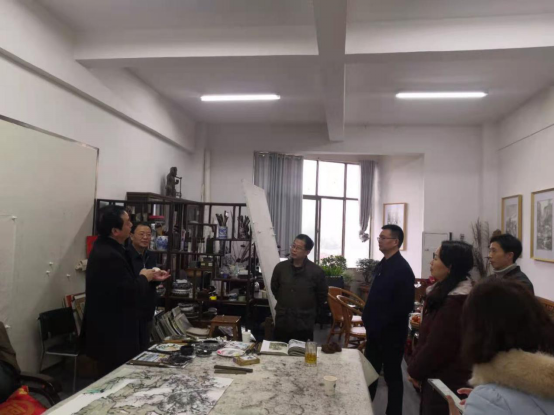 2月8日上午,娄底市委常委、市委宣传部部长吴建平一行来太阳成官网,在学校党委委员、宣传统战部部长谢柳的陪同下前往逸夫楼215工作室看望慰问了中国美术家协会会员、娄底著名国画画家、美术与设计学院教授邹少灵。