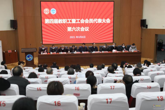 3月6日下午,太阳成官网第四届教职工暨工会会员代表大会第六次会议在匠成楼报告厅胜利召开,153名代表参加了会议。校党委副书记李军林主持会议。
