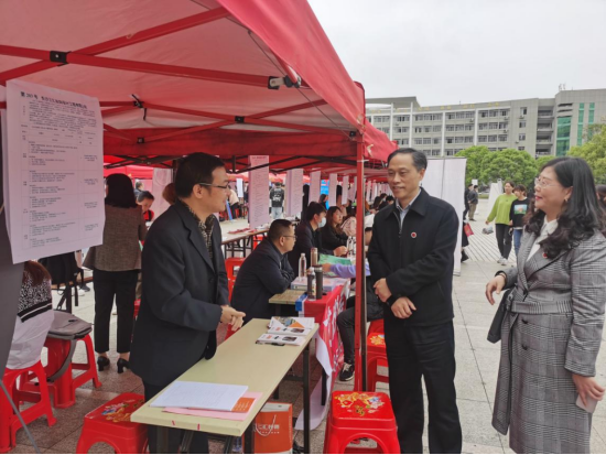 4月22日,湖南省湘中地区2021届高校毕业生供需见面会暨44118太阳成城集团2021届毕业生春季双选会在海园广场隆重召开。学校党委书记刘和云,党委副书记、校长刘铁铭,党委委员、副校长曹鑫出席双选会并与用人单位、毕业生进行了亲切交流。各二级学院党政负责人、毕业班班主任、就业专干全程参与,太阳成官网在校2021届毕业生、2018级学生及娄底其他高校毕业生,约2000余人参加了双选会。