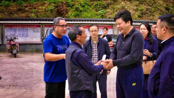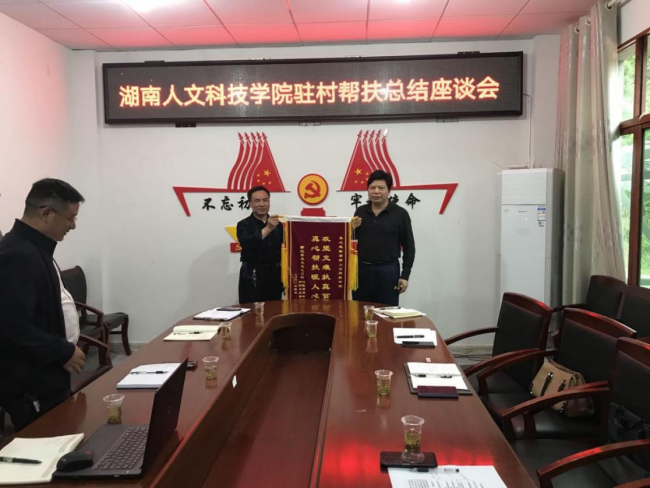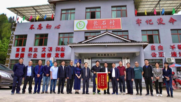 村支书郑能伟将一面印着“脱贫克难扶真贫,真心帮扶暖人心”的锦旗送到书记刘和云手中,表达了长石村全体村民的深情厚谊。