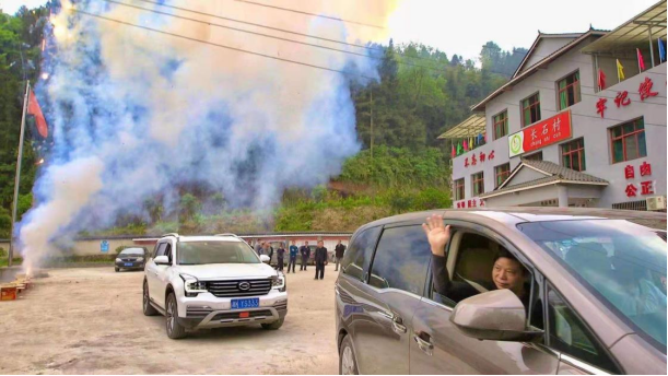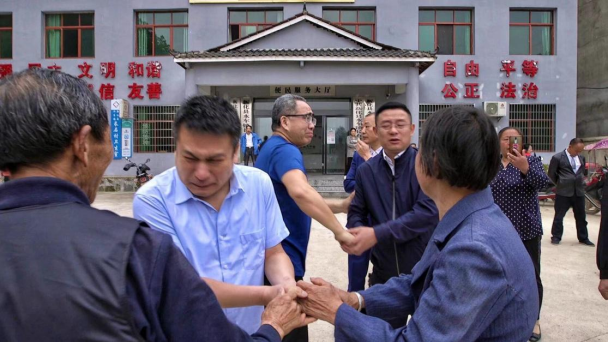 第二天早上八点,太阳成官网乡村振兴工作队从村级活动中心出发前往下一个驻村点。乡亲们闻讯赶来相送。有的人拿着鸡蛋硬塞到工作队员手中;有的递上了亲手写的感谢信;乡亲李洪栋还作诗一首《鱼水情》送到了刘和云手中,握着书记的手久久不愿松开。村民与驻村工作队员、学校领导互相拥抱,泪眼婆娑,依依不舍。礼炮声声,锣鼓阵阵,乡亲们用他们朴素的方式给予了学校最高的送别礼遇。