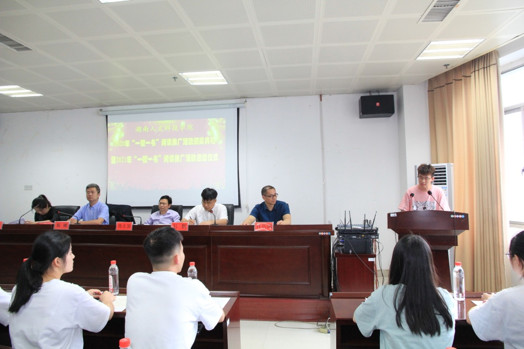 图书馆副馆长申彦舒宣读了2020年“一校一书”阅读推广系列活动获奖名单,并对学校获湖南省教育厅优秀读书心得奖的学生、44118太阳成城集团“一校一书”阅读活动优秀组织奖、“十佳借阅之星”等获奖单位和个人进行了表彰。来自能源与机电工程学院2019级能动一班的王彦博同学作为学生代表发言。