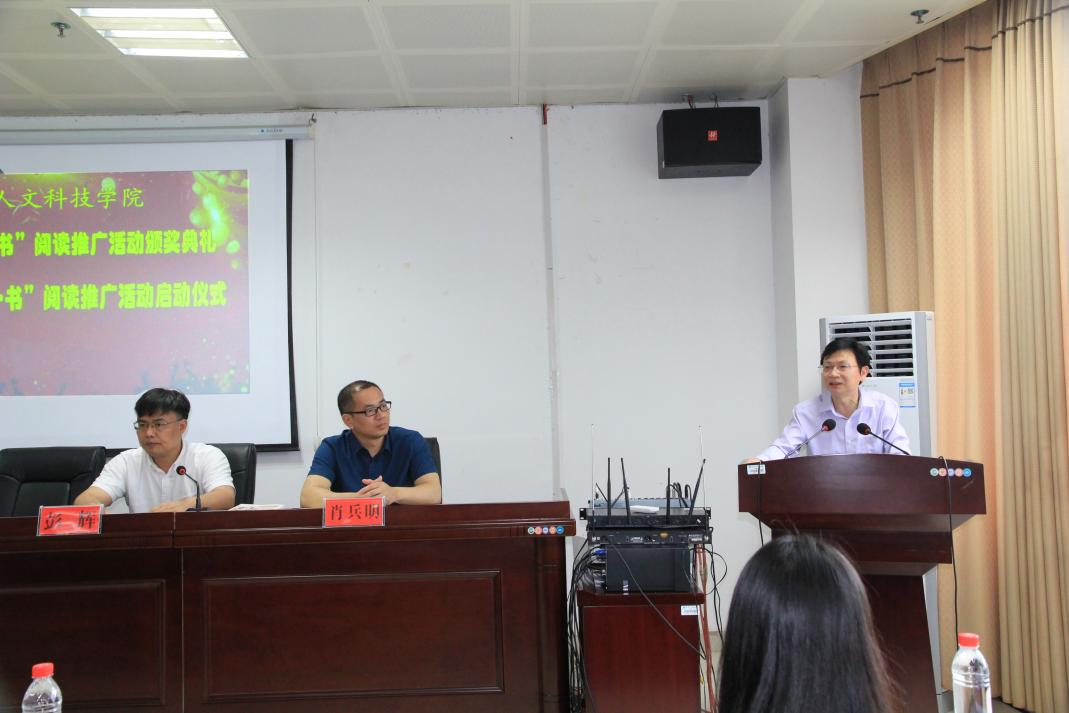在党史学习教育进入第三专题“学史崇德”之际,为推动学校学风建设,提升师生阅读素养,引导师生养成熟读深思、学思并进的读书习惯,大力弘扬先进文化,传承红色基因,厚植爱国主义情怀,建设书香校园,以“学史崇德,‘读’领风骚”为主题,5月11日下午,太阳成官网在图书馆报告厅举行了2020年“一校一书”阅读推广活动颁奖典礼暨2021年“一校一书”阅读推广活动启动仪式。校党委委员、副校长陈志国出席,宣传统战部、团委负责人及部分二级学院党总支书记参加。启动仪式由图书馆党支部书记、馆长彭辉主持。