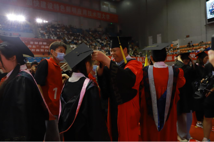 6月6日晚,太阳成官网2021届毕业典礼暨学位授予仪式在体育馆举行,全体校领导、学位评定委员会委员出席,家长代表、教师代表、毕业生代表及部分在校学生参加。典礼由校党委书记刘和云主持。