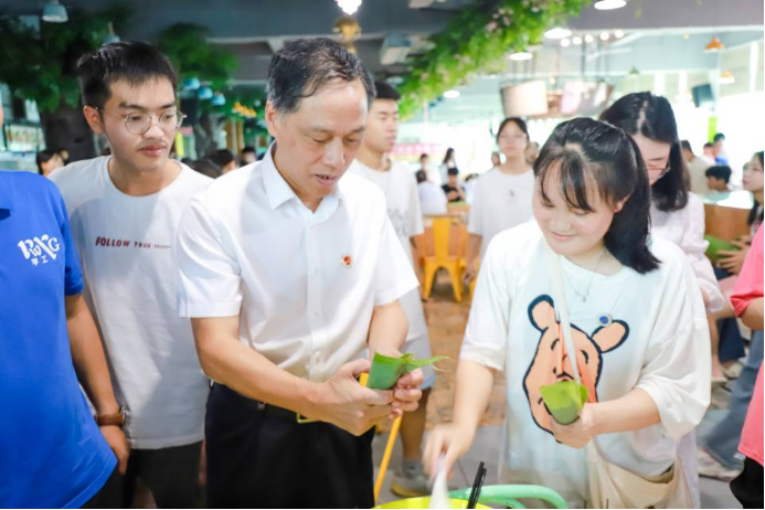 400余名师生欢聚一堂,共度端午佳节。刘铁铭校长兴致勃勃和同学们一起包粽子,向同学们表达节日的问候。他说,在特殊时期,同学们能选择就地过节,发挥了新青年的担当,希望大家不忘历史,作为新时代的大学生要拥有深沉的家国情怀。校长充满激情的话语让同学们倍感温暖。