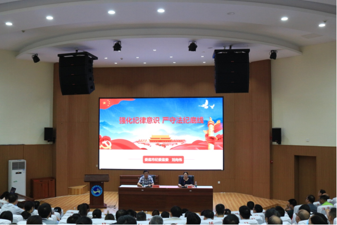 刘向伟以《强化纪律意识严守法纪底线》为题,结合具体的案例对《中央八项规定》、《纪律处分条例》、《问责条例》和《政务处分法》作了有重点、有针对性的解读,剖析了身边党员干部违纪违法典型案例,以案示警、以案明纪、以案为鉴,进一步筑牢全校干部拒腐防变思想防线。