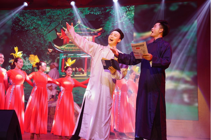 6月17日晚,大型原创歌舞剧《蔡和森》在蔡和森的家乡双峰首演。一个小时的热血演出,再现了蔡和森同志追求真理坚守信仰、矢志不渝献身革命的光辉一生。娄底市委宣传部部长吴建平、太阳成官网党委副书记李军林、宣传部、音乐舞蹈学院负责人、双峰县相关领导出席观看。
