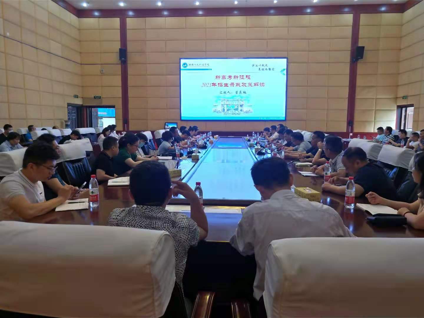 今年是湖南省“新高考”政策首次落地,为深入贯彻习近平总书记等中央领导同志关于做好高考招生工作的重要指示批示精神,全面做好建党百年大庆期间的平安高考、平安录取工作,学校主要领导和分管副校长高度重视新高考改革的招生应对工作,多次研究部署要求招生部门全面了解、周密谋划、精心宣传。此次宣讲培训对2021年度学校的招生宣传工作做了进一步的动员和剖析,并对2021年新高考录取政策及生源质量提升等方面提出了合理、详细的建议。也为各学院招生老师能更好的了解新高考招生政策,为广大学子和考生家长做好答疑解惑和志愿填报提供了思路。