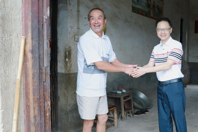 在戴迪吉、邹勤俭、袁正财、彭正来等老党员的家里,李军林同他们亲切交谈,了解村情,并代表学校送上慰问金和慰问品。