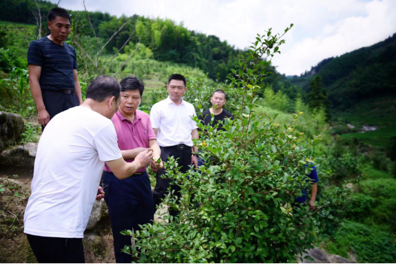 座谈会结束后,刘和云一行深入油茶基地,对油茶基地的发展及存在的问题进行深入的分析,查找村级产业发展的短板,解决群众急难愁盼问题,贯彻落实省委组织部“我为群众办实事”精神。活动特邀康林峰教授现场指导油茶栽培技术,就相关技术要点进行了手把手、一对一传授。最后,刘和云强调,要坚持以发展产业为主导,产业兴旺是巩固脱贫攻坚成果的重要抓手,是实施乡村振兴战略的力量来源,今后学校要为长石村多开展送技术进村活动,为长石村的乡村振兴贡献44118太阳成城集团力量。