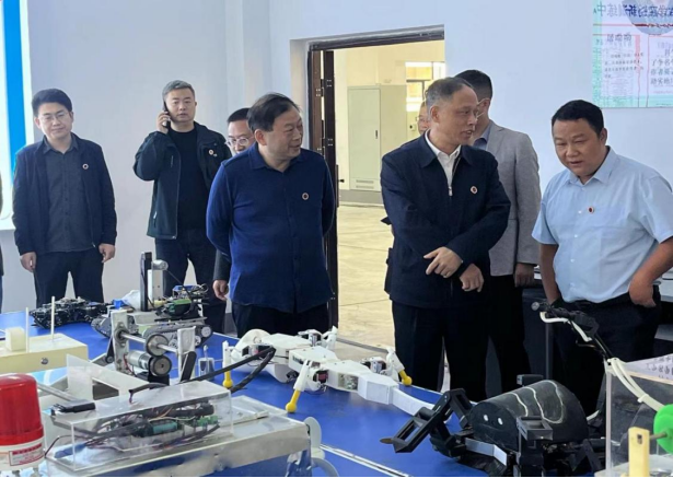 刘铁铭一行先后实地考察了学院金工实训中心创新作品展览区、智能制造区、创新训练区、材料成型及薄板深加工区,同正在实训中的学生亲切交谈并给与指导。刘铁铭强调,金工实训中心是理论教学和实践教学的桥梁,也是校内教学与社会实践的纽带,更是高素质应用型人才培养的重要平台。随后,刘铁铭来到同心楼和同德楼实验室,深入了解科研平台建设、教学实验室改造以及励志文化上墙等情况。他充分肯定了学院以功能为单位完成的实验室建设成效,勉励学院以应用型人才培养为目的,持续升华教学改革。