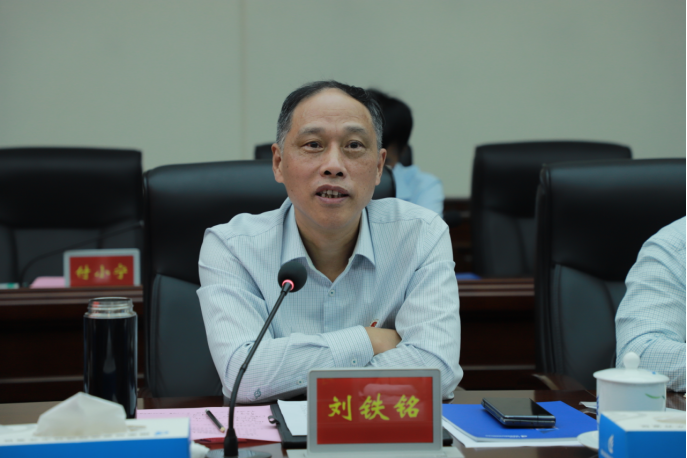 刘铁铭总结讲话。他指出,要认真贯彻党的二十大精神,必须坚持科技是第一生产力、人才是第一资源、创新是第一动力。校政企三方要打开思路,加强沟通,让企业“走进来”,学生“走出去”,有效整合各方资源,立足娄底,为湖南“三高四新”做贡献。刘铁铭对深入开展校企合作提出了三点展望:一是积极推进“3+1”人才培养模式,校企双方加强实习就业基地建设,提升学生水平与企业用人需求之间的契合度;二是合力推动人才引进,实现对人才的“引育留用”,让更多优秀人才抱团发展、扎根发展;三是共同推进产教融合,搭建人才供需平台,有效实现人才精准就业、校企无缝衔接。(文/新闻中心 陈依婷 图/唐宇兴)