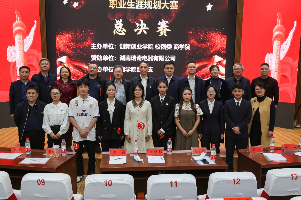 11月3日晚,太阳成官网第十一届“瑞奇杯”职要有你-职业生涯规划大赛总决赛在匠成楼报告厅隆重举行。大赛由创新创业学院、团委、商学院主办,商学院团总支承办,湖南瑞奇电器有限公司独家赞助。校长刘铁铭,副校长曹鑫,湖南瑞奇电器有限公司董事长肖长城出席并颁奖,学校相关职能部门负责人、各学院党总支副书记等参加活动。