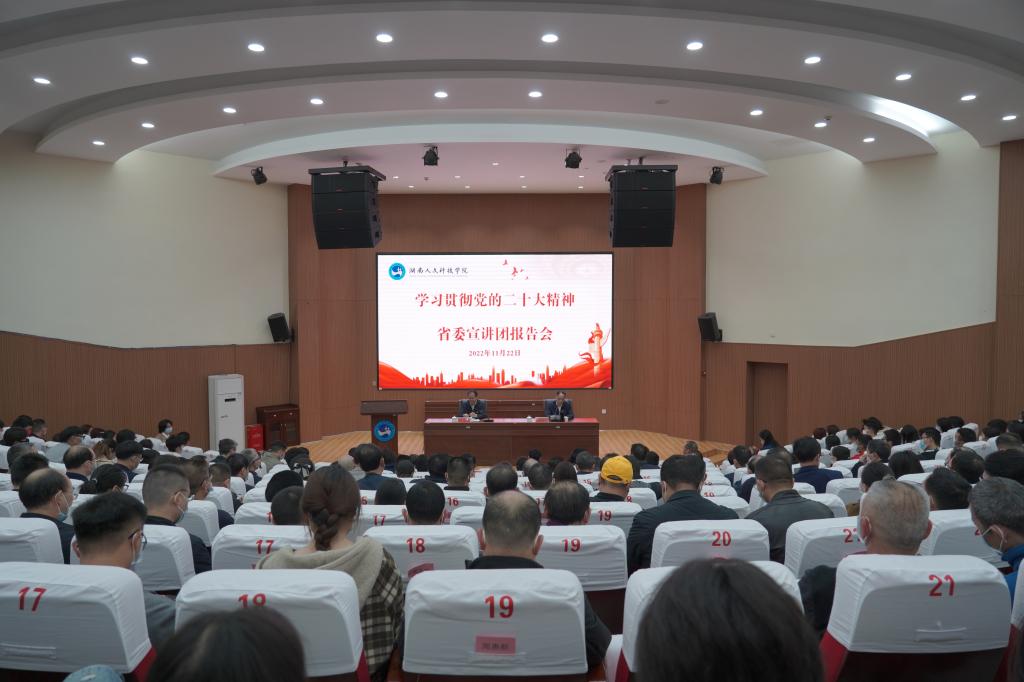 根据省委统一部署,11月22日上午,学习贯彻党的二十大精神省委宣讲团报告会在学校匠成楼报告厅举行。省委宣讲团成员、省档案馆党组书记、馆长叶建军作宣讲报告。党委副书记、校长刘铁铭主持报告会,在家校领导出席。学校副处以上实职干部,辅导员和学生代表等300余人现场聆听。