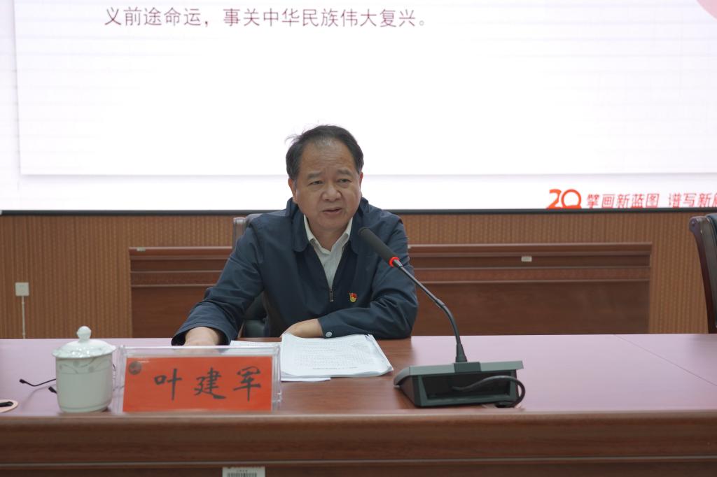 叶建军以《谱写新时代中国特色社会主义更加绚丽的华章》为题,紧扣党的二十大报告原文,重点围绕全面领会党的二十大主题及主要成果、深刻认识新时代十年的伟大变革及其里程碑意义、不断开辟马克思主义中国化时代化新境界、牢牢把握新时代新征程中国共产党的使命任务、贯彻落实新时代新征程的战略部署、用新的伟大奋斗创造新的伟业等六个方面,对党的二十大精神进行全面系统深入地宣讲解读。