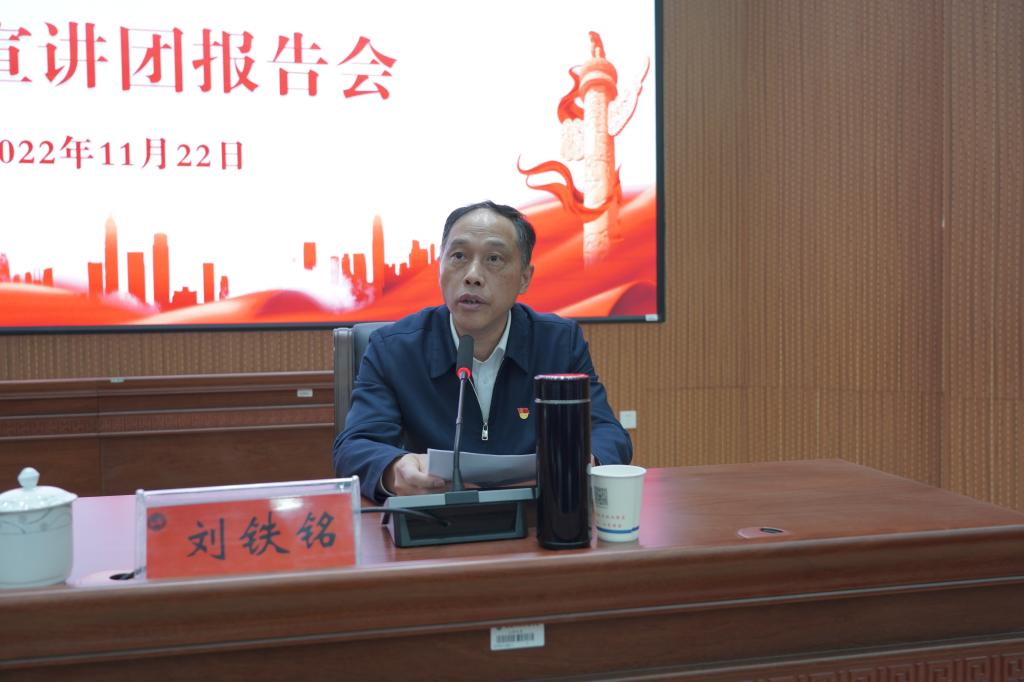 刘铁铭总结讲话。他强调,全校要把学习宣传贯彻党的二十大精神作为学校当前和今后一个时期的头等大事、首要政治任务来抓。他要求:一是学习领会要学深悟透。全面准确把握党的二十大精神的丰富内涵和核心要义,将其作为学校思想政治教育和课堂教学的重要内容。党员干部要率先垂范、领学促学,加强斗争精神和斗争本领养成;二是宣传宣讲要入脑入心。要加强研究阐述,用通俗的语言讲清道理,用扎实的学理解读精神,引导师生准确把握党的二十大精神的思想精髓、核心要义,让师生知其言更知其义、知其然更知其所以然;三是贯彻落实要见行见效。把贯彻落实二十大精神与落实立德树人根本任务,与开展深化改革,与服务湖南“三高四新”战略,与推进学校重点工作等结合起来,切实把党的二十大精神转化为推动学校改革发展的强大动力和实际成效。