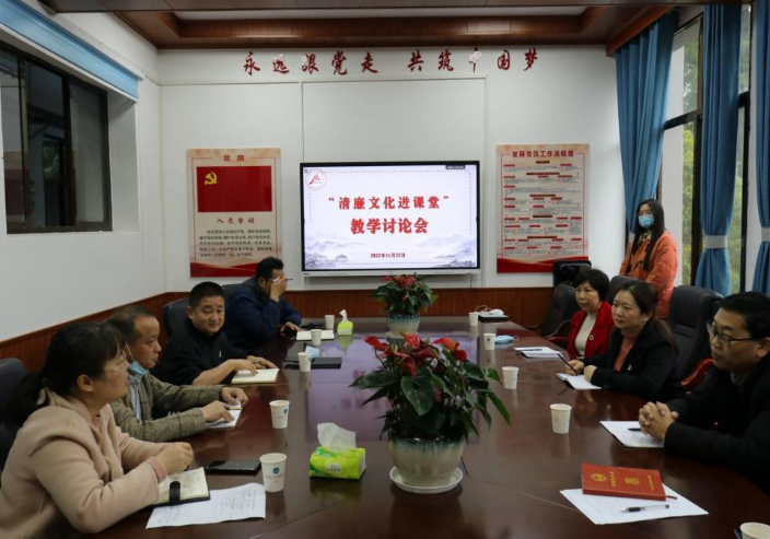 随后,马克思主义学院副院长杨国辉就“清廉文化进课堂”工作开展情况进行了汇报,表示全体思政课专任教师将继续努力改进思政课教学,为清廉校园建设贡献力量。参会教师们积极发表自己的看法,讨论氛围热烈,就如何结合清廉文化融入思政课展开了相关教学讨论,为清廉文化进课堂和清廉校园建设献计献策。