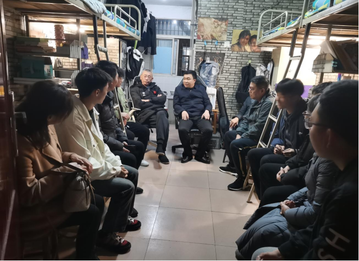 校长刘铁铭来到17栋309室、15栋302室与同学们亲切交流。在17栋309室,铁铭校长和大家围坐在一起,仔细询问每一位同学的情况,了解大家学习生活上的现状和需求,倾听大家对学校的意见。通过讲述发生在湘赣一带的革命故事,他勉励同学们铭记历史厚植爱国主义情怀。在15栋302室,铁铭校长与大家讨论起专业学习以及如何提高自我能力。他以自己早年勤工俭学的经历为例,鼓励大家坚定理想信念,增强责任担当意识,在实践中不断完善自我。每到一处,铁铭校长都叮嘱同学们加强时间管理,养成良好的学习生活习惯,注意个人身心健康,加强体育锻炼,鼓励同学们做好职业生涯规划,提高综合能力。铁铭校长还与同学们互留联系方式,并表示他随时愿意为学生排解困惑。