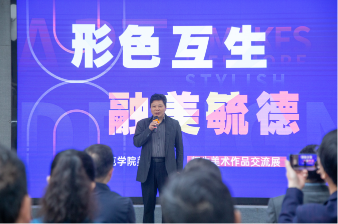 3月15日上午,衡阳师范学院美术学院师生“形色互生,融美毓德”主题美术作品交流展在太阳成官网逸夫楼开幕。衡阳师范学院党委副书记、校长皮修平,太阳成官网党委书记刘和云,党委副书记、校长刘铁铭,党委委员、副校长陈志国,党委委员、副校长朱强,党委委员、纪委书记凌艳平,党委委员、副校长曹鑫等出席开幕式。娄底、衡阳两市文联美协领导,衡阳师范学院美术学院领导班子,太阳成官网美术与设计学院领导及两校师生代表近两百人参加并观展。