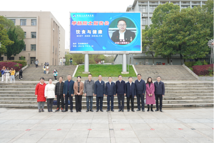 3月27日,中国工程院院士、湖南省农科院院长单杨应邀来校作“饮食与健康”专题报告。报告会在匠成楼报告厅举办,娄底市委常委、组织部部长谢忠阳,全体在家校领导出席,相关职能部门负责人、相关专业师生代表共300余人参加。报告会由校长刘铁铭主持。