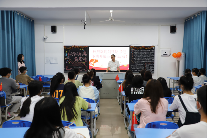 党委书记刘铁铭先后来到若谷楼、逸美楼指导2022级思想政治专业、美术学专业、材料科学与工程专业等学生班级主题团课。他情真意切向同学们讲述夏明翰等革命先辈的壮烈事迹、新中国成立以来取得的各种伟大成就和党的二十大的里程碑意义。他要求同学们更加努力地学党史、学思想、学知识、学本领;凝心铸魂、锤炼品格;听党话、跟党走、分党忧;重实践、建新功,成为德智体美劳全面发展的社会主义建设者和接班人。他深情寄语:“同学们肩负时代使命,要眼有星辰大海,心有繁花似锦,成长为一个有眼界、有气度并且有抱负的新时代青年,书写青春美丽华章。”