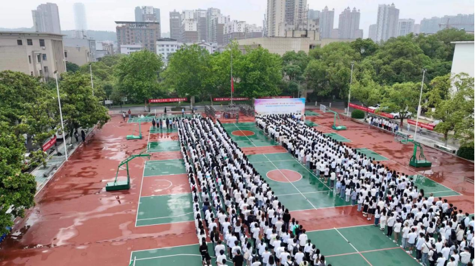 7时30分,主题升旗仪式开始。国旗护卫队迈着铿锵有力的步伐,护卫着鲜艳的五星红旗入场。伴随着雄壮的国歌,五星红旗冉冉升起迎风飘扬。全体师生肃立向国旗行注目礼。学生代表欧阳鸿烨以“心中光芒万丈,照亮前行方向”为主题演讲。他倡议:作为新时代青年,应当正视心理健康教育,做从内而外阳光向上的接班人,才能更好绘制新时代的宏伟蓝图!随后,全体学生在国旗下宣誓。