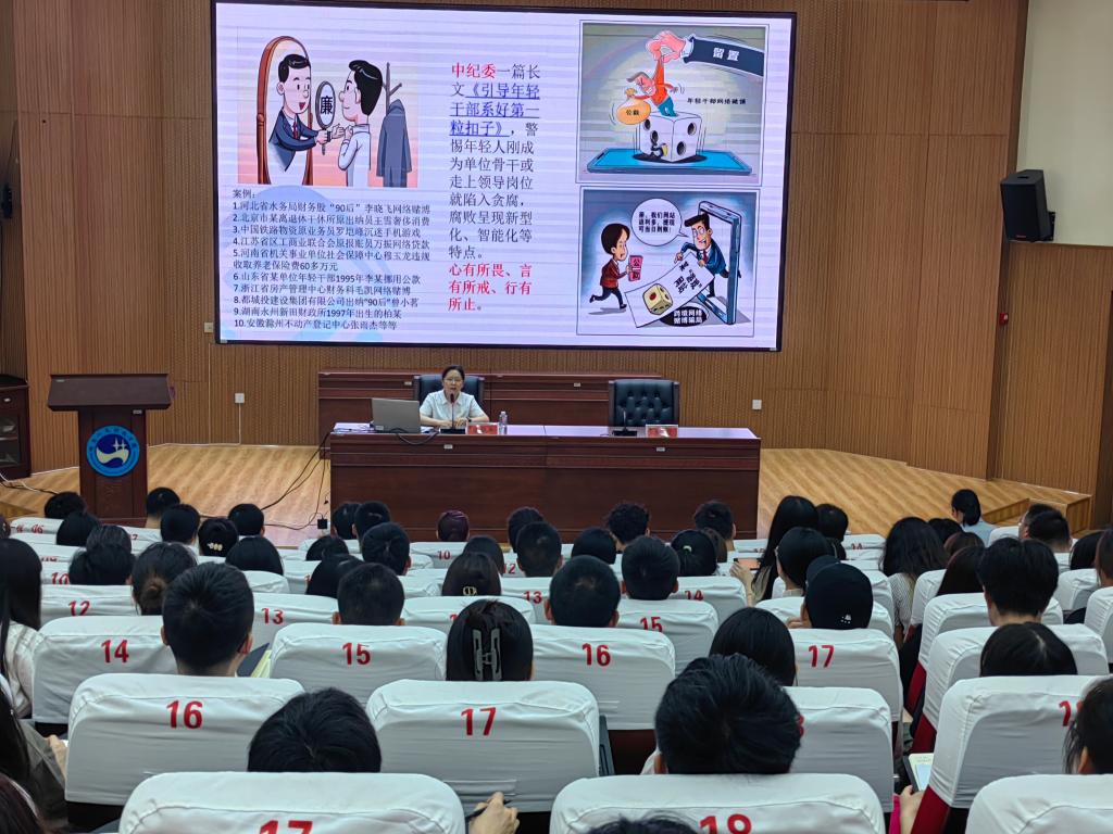 党委委员、纪委书记凌艳平以“坚定信念,清正廉洁作表率”为主题,以丰富的史料生动诠释了清廉是中华民族的传统美德和党的优良作风,又深入浅出详细讲解了《中国共产党廉洁自律准则》,引导学员们扣好人生清廉的“第一粒扣子”,切实做到坚定信念、坚守初心,筑牢廉洁自律防线,争作清正廉洁的表率。
