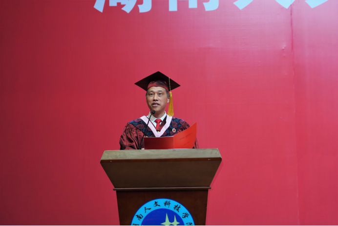 党委书记刘铁铭致辞。他向2023届圆满完成学业的学子致以最热烈的祝贺!向辛勤培育学生的老师们和一路陪伴的亲友们致以最衷心的感谢!向回校观礼的往届校友致以最诚挚的欢迎!刘铁铭表示,2023届毕业生是最为特殊的一届毕业生。受疫情影响,同学们经历了从抗疫始发到基本结束,度过了最长的寒暑假。但面对这场疫情大考,同学们主动参与、积极配合,不惧困难、奉献爱心,为抗击疫情作出了积极贡献,展现了良好的精神风貌和责任担当,彰显了人文科技学子蓬勃向上的青春力量。四年来,同学们参与和见证了学校的快速发展。学校事业的每一点进步都凝聚着同学们的青春汗水,学校前进的每一个步伐都留下了同学们拼搏进取的印记。他向2023届毕业生表示由衷感谢!