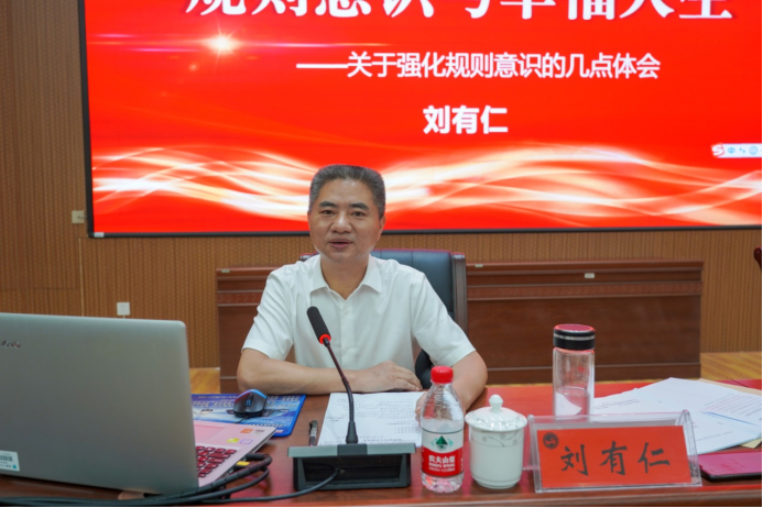 刘有仁围绕“兴法度者最强大”、“奉法度者最有力”、“畏法度者最快乐”等三个方面,结合古今中外生动历史史料,用理论、制度、规定以及大量典型案例,旁征博引、深入浅出地对“法治兴则国家兴”、“法治是最佳的治理模式”进行了精辟系统的阐述。他特别强调,没有规矩不成方圆,所有权力(利)不可滥用,并告诫党员干部应该算清落入法网的“七大账”,越自律才能越自由,越自觉才能越幸福。