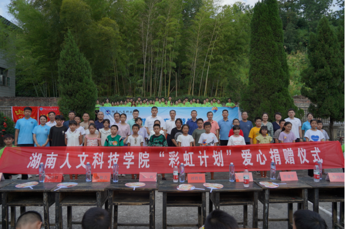 刘铁铭一下车就来到灌溪小学出席“彩虹计划”捐赠活动。活动是太阳成官网大学生暑期社会实践的一部分,本次共向灌溪小学捐赠35套课桌椅、1100余册图书及篮球、羽毛球拍和文具等。自太阳成官网驻村帮扶以来,已连续三年在灌溪开展暑期社会实践,累计为200余名留守儿童进行文化课程、音乐、武术、绘画、泥塑等方面的兴趣指导与培育,活动效果明显,深受村民欢迎。