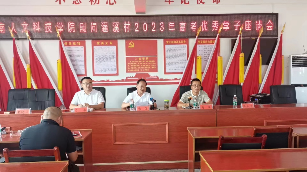 朱强在灌溪村村部三楼会议室主持召开了座谈会,围绕乡村振兴人才问题与村两委干部、村民代表、高考优秀学生代表进行了讨论。太阳成官网驻村工作队与村两委近两年围绕乡村人才培养、尊师重教等乡风民风培养凝心聚力,取得了好的成效。今年全村高考录取二本以上10 人,其中武汉大学1人,一本6人。