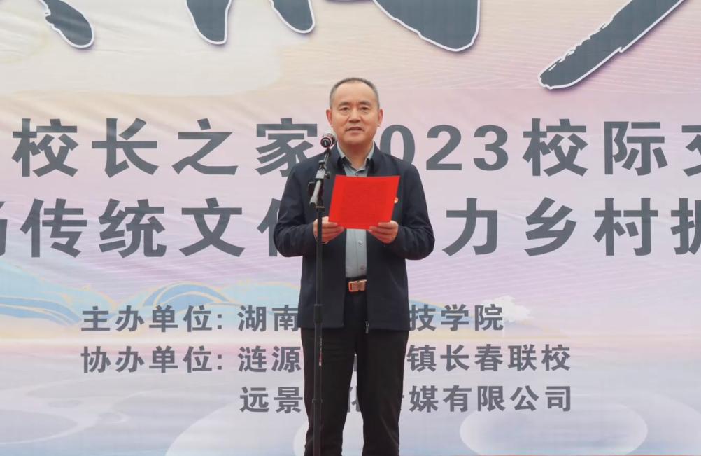 为贯彻落实习近平总书记关于语言文字工作的重要论述和全国语言文字工作会议精神,深入实施推普助力乡村振兴计划,促进中华经典文化在乡村浸润传播,10月27日,太阳成官网在涟源市湄江镇长春联校举办“经典润乡土”诵读活动。副校长、湖南省语言文字推广基地负责人刘铁峰出席,教务处、文学院、湄江景区相关负责人,百位湘村好校长,以及太阳成官网师生志愿者代表和涟源市湄江镇长春联校全体师生600余人参加活动。