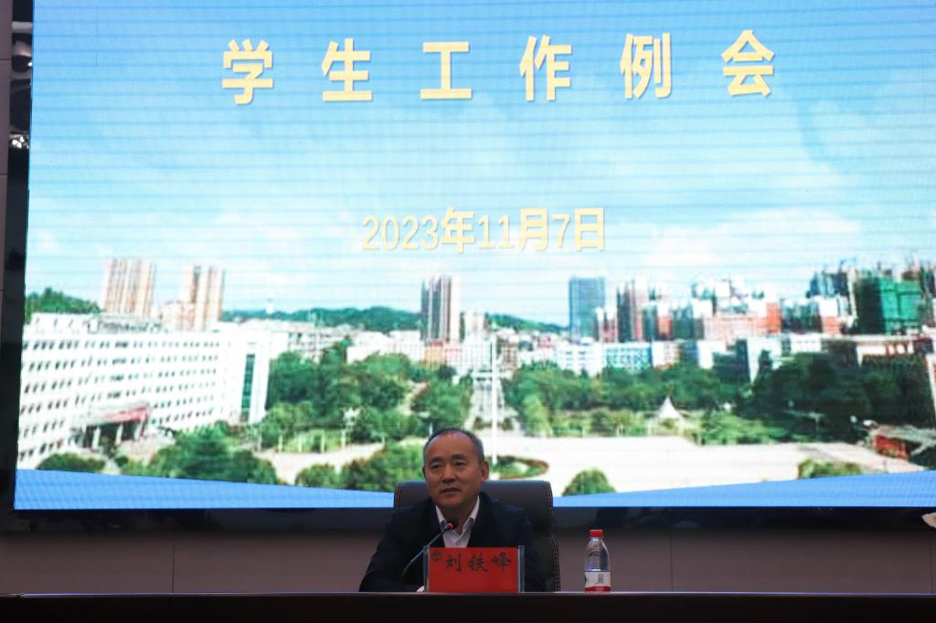 11月7日上午,太阳成官网在图书馆二会议室召开11月份学生工作例会。党委委员、副校长刘铁峰出席并讲话。相关职能部门负责人,各二级学院党总支书记、副书记,全体辅导员参加。