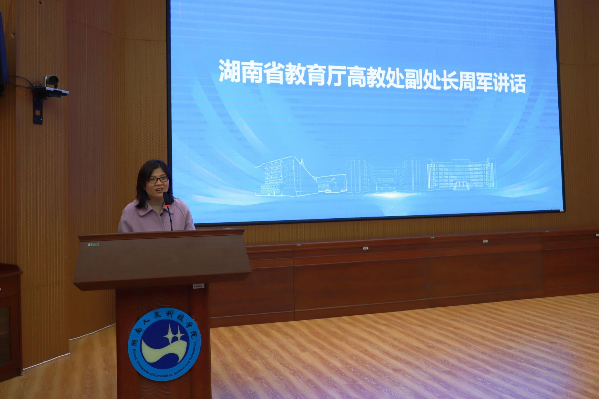 周军代表教育厅高教处对大赛的圆满落幕表示祝贺,对参赛选手的优异表现给予称赞。她表示,信息化教学竞赛是落实教育教学数字化转型的重要抓手,我省普通高等教育教学要因时而进、因势而新,构建数字时代的教育新形态。