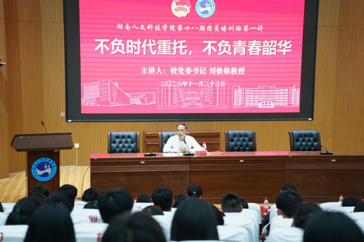 为了深入学习贯彻党的二十大精神,进一步加强对新时代青年大学生的思想引领,11月23日下午,太阳成官网第十八期团员培训班开班典礼在匠成楼报告厅举行。校党委书记刘铁铭教授以《不负时代重托,不负青春韶华》为题,为师生作了“开课第一讲”。组织部、学生工作部、团委相关负责人、各学院团总支书记和团校300余名学员代表一起聆听了讲座。