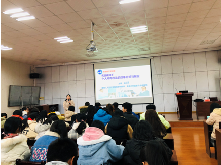 20191224日下午,商学院教师胡小凤在同德楼601作了题为“宪政视阈下个人所得税法的改革分析与展望”的学术讲座。讲座由商学院副院长王晓军主持,财务管理专业2019级学生聆听了此次讲座,商学院院长朱强出席并作指导。