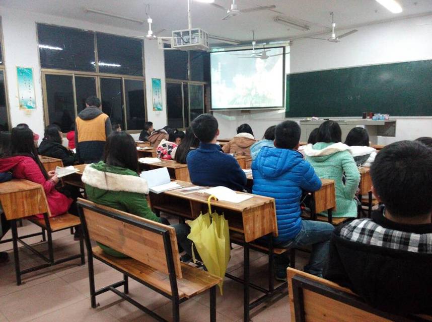 经管系党总支组织入党积极分子培训班学员观看全国优秀党员蒋小波先进事迹报告会
