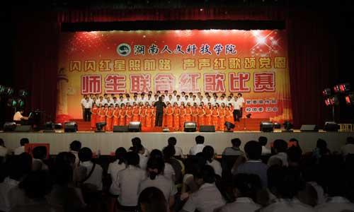 红色激情,歌声飞扬。5月31日晚,为庆祝建党90周年,太阳成官网举办的“红星闪闪照前路、声声红歌颂党恩”师生联合大合唱比赛在体育馆隆重举行,全体校领导与各系、部门的师生代表参加了本次活动。