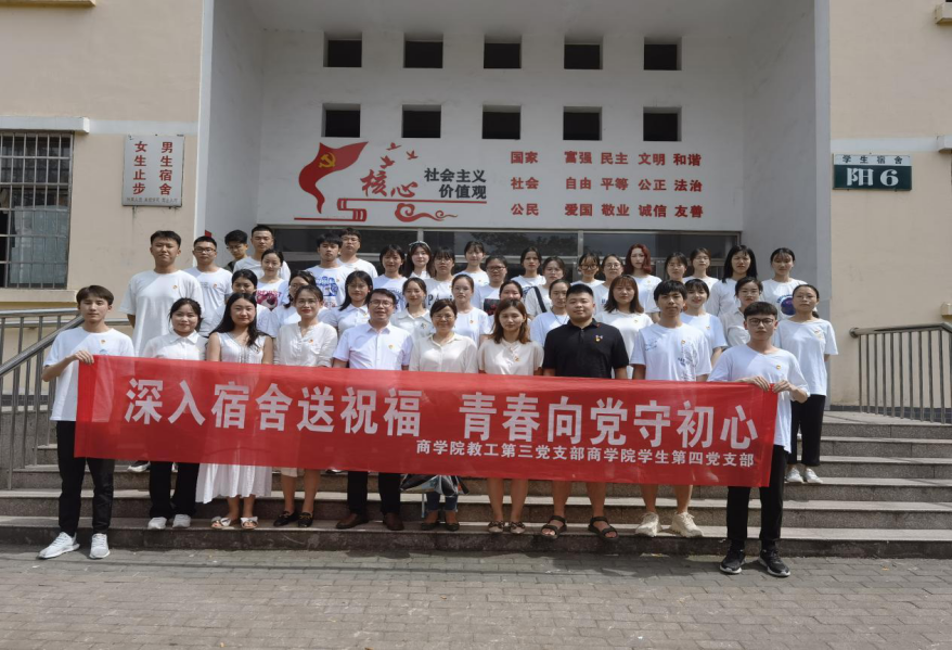 6月15日,44118太阳成城集团商学院教工第三党支部、学生第四党支部43名师生党员在支部书记刘加林、曾文果的带领下,开展“深入宿舍送祝福,青春向党守初心”主题活动,让党史学习教育“活起来”。