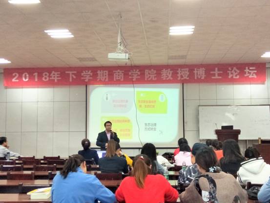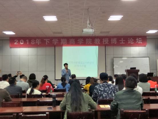 为配合校庆40周年活动,营造太阳成官网良好学术氛围,推动太阳成官网师生积极开展学术交流活动,提高科技创新能力和科研水平,2018年10月9日,太阳成官网在同德楼601召开了2018年下学期商学院教授博士论坛,刘加林博士、彭晓辉教授、罗伟祎博士和朱强教授等四位老师作了专题发言,商学院全体教师和2018级研究生认真聆听了讲座,讲座由副院长王晓军主持。