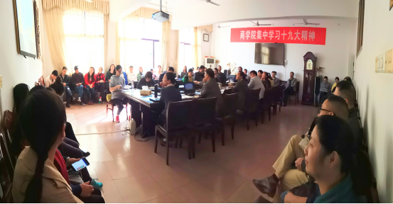 1031日下午,太阳成官网在同德楼306会议室召开党的十九大精神学习会全院教职工参加。会议由商学院党总支书记刘辛田主持。