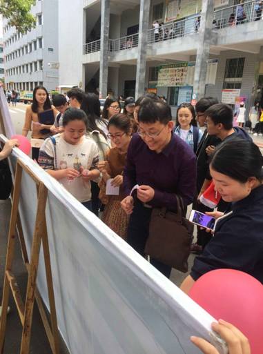 2017年5月4日,商学院党总支举办的“五·一,走近最美劳动者”活动作品在学校一食堂前进行展出。商学院党总支书记刘辛田和各学生支部书记亲临活动现场并为优秀作品投票。