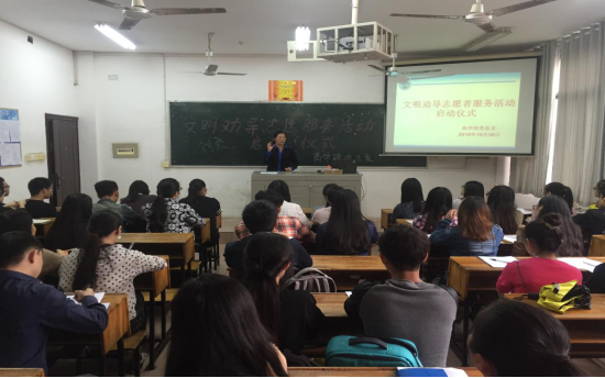 为了配合学校创建湖南省文明标兵单位,充分发挥党员、入党积极分子的模范带头作用,实现商学院学生整体文明素质的提升,2016年10月20日上午10点,商学院党总支在同德楼201教室举行了文明劝导志愿者服务活动启动仪式,出席本次仪式的有党总支刘红燃副书记、学生党支部书记吴超老师、梁丹老师、丁剑老师、文敏老师、各支部支委以及各支部拟发展对象。