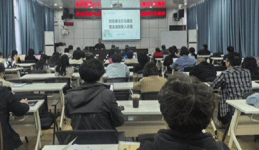 10月28日下午,商学院在高韵楼101举办《加强廉洁文化建设 营造清朗育人环境》专题辅导报告会,党总支书记刘辉主讲,商学院全体教职员工参加。