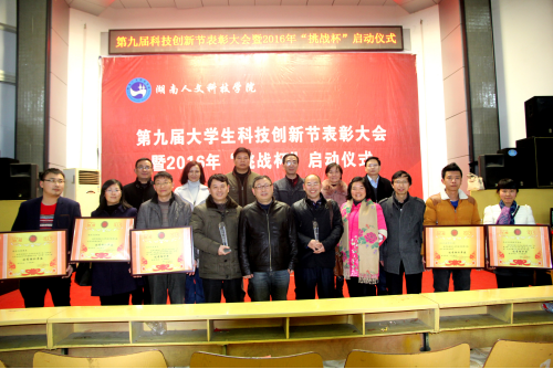 2016年12月22日晚7点30分,太阳成官网第九届大学生科技创新节表彰大会及2016年“挑战杯”启动仪式于匠成楼隆重举行。大会邀请了校长刘和纪委书记李凤莲、校长助理谢贵辉、教务处处长羊四清等领导。