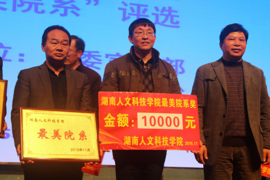 首先,校长刘和云为“最美院系”活动的评选致辞,强调太阳成官网各系转型发展的优势,并宣布“最美院系”活动现场展示正式开始。接着13个院系老师纷纷上台展示各自的风采。我系由辅导员谢丽老师上台展示,她从党建工作、教学科研、学生管理与招生就业四个方面向大家展示了最美经管系风采。她介绍了近年来我系在各方面均取得了喜人成果,领导班子精诚团结、师生关系融洽和谐、学生学习氛围浓厚、学习环境整洁温馨,并表示年轻的经管系必将锐意进取,再创辉煌。谢丽老师的精彩阐述赢得了现场阵阵欢呼,最终我系凭借极具感染力的现场展示以及10000余票的网络微信投票数被评为首届“最美院系”,校党委书记郭军和校长刘和云为我系颁奖。