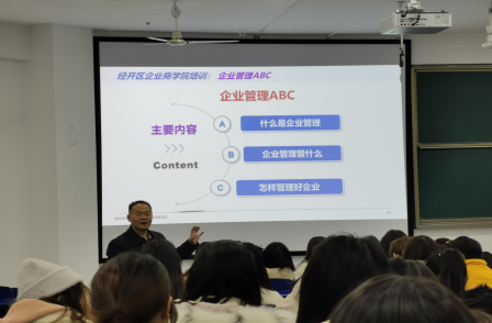 12月21日晚上7:30,商学院在致远楼119教室展开本学期第五次创新创业教育实践周知识讲座,主讲人为朱强院长,参与本次讲座的有商学院19级旅游管理、财务管理、电子商务、物流管理等4个专业的学生共206人。