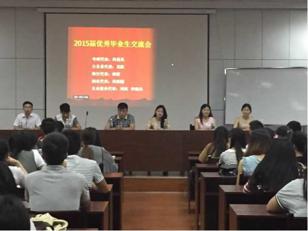 2015年5月21日晚19点30分,经济与管理系人力资源管理专业在同德楼601报告厅召开2015届优秀毕业生交流会。